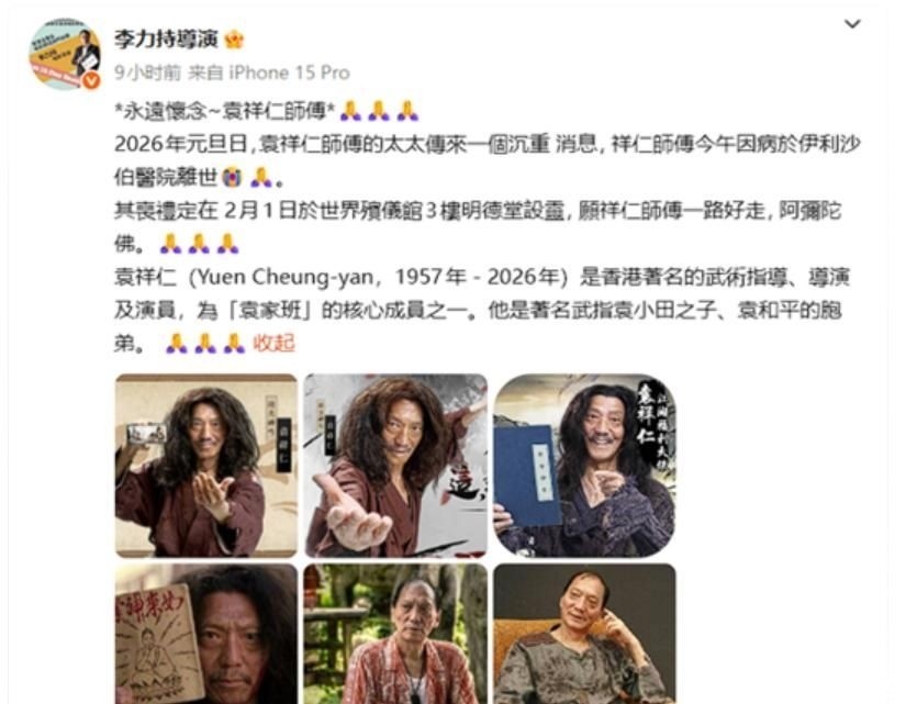 2026年元旦晚间,香港知名导演李力持在其社交媒体平台发布了一条令人悲痛的消息: